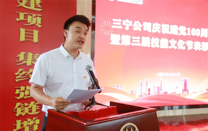 隨后,全體人員觀看了石寶山新材料分公司黨支部紅旗黨小組空分黨小組的視頻。視頻中,該黨小組5名黨員在大修期間展現(xiàn)了出色的領(lǐng)導(dǎo)力和團隊協(xié)作能力,成功應(yīng)對各種挑戰(zhàn),順利完成了大修任務(wù),他們用實際行動詮釋了黨員在工作中的關(guān)鍵作用。 公司黨委委員、總經(jīng)理殷銀華作了題為《狠抓有效益生產(chǎn),聚焦酰胺項目投產(chǎn),全力以赴高質(zhì)量完成全年既定目標(biāo)》的講話。他全面總結(jié)了公司上半年的生產(chǎn)經(jīng)營情況,并對下半年的工作進行了周密的部署和安排。同時,他對黨員和管理人員提出了殷切的希望和要求。 殷銀華總經(jīng)理強調(diào):“在當(dāng)前公司面臨市場形勢的內(nèi)外挑戰(zhàn)、項目建設(shè)的攻堅沖刺以及生產(chǎn)經(jīng)營的提質(zhì)增效三重壓力下,每一位三寧人都應(yīng)肩負(fù)起建設(shè)和發(fā)展三寧的職責(zé)。各級黨組織和廣大黨員更應(yīng)肩負(fù)起崇高的使命,迎難而上,全力以赴確保在建項目的順利推進和投產(chǎn)。”