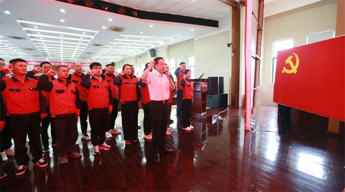 黨委書記、副總經(jīng)理姚定貴引領(lǐng)全體黨員重溫入黨誓詞,那鏗鏘有力的誓言在會場中回蕩,振奮人心。