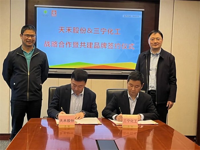 簽約儀式前,雙方進(jìn)行了親切交流。姚偉英對(duì)毛國(guó)斌一行的到來(lái)表示熱烈的歡迎,對(duì)三寧化工多年來(lái)的支持表示了衷心的感謝,同時(shí),對(duì)天禾公司的經(jīng)營(yíng)及發(fā)展情況進(jìn)行了介紹。天禾公司是一家“以現(xiàn)代農(nóng)技服務(wù)為先導(dǎo)、直達(dá)終端的配送體系”為支撐,為作物提供專業(yè)解決方案,為優(yōu)秀農(nóng)資產(chǎn)品提供上市和農(nóng)業(yè)綜合服務(wù)的企業(yè)。姚偉英對(duì)三寧化工取得的行業(yè)地位給予了充分肯定,他表示,希望通過(guò)此次戰(zhàn)略合作暨共建品牌“粵佳寧”的簽訂,與三寧化工在尿素、磷酸一銨、磷酸二銨、復(fù)合肥、水溶肥等產(chǎn)品上開展更加深入的戰(zhàn)略合作。 毛國(guó)斌對(duì)天禾公司在全國(guó)流通領(lǐng)域的地位及經(jīng)營(yíng)發(fā)展情況給予了高度贊賞,對(duì)三寧化工當(dāng)前的經(jīng)營(yíng)情況進(jìn)行了介紹,就公司近期以及未來(lái)“兩個(gè)產(chǎn)業(yè)鏈”“三條賽道”的寓義作了詳細(xì)地介紹。他強(qiáng)調(diào),三寧化工作為生產(chǎn)企業(yè)和天禾公司作為流通企業(yè)的定位都非常明確,各自的優(yōu)勢(shì)很突出,彼此合作互補(bǔ)性非常強(qiáng)。他表示,近年來(lái),三寧化工與天禾公司的合作越來(lái)越廣泛,目前合作區(qū)域已經(jīng)覆蓋了黑龍江、吉林、遼寧、蒙東、江西、廣西、海南、廣東等地區(qū),這次與天禾公司的戰(zhàn)略合作是繼公司與惠多利公司后簽訂戰(zhàn)略協(xié)議的第二家省級(jí)公司。 現(xiàn)場(chǎng)參加人員紛紛表態(tài)。張炳亮現(xiàn)場(chǎng)表態(tài),將認(rèn)真貫徹落實(shí)戰(zhàn)略合作暨共建品牌協(xié)議的細(xì)則,做到穩(wěn)步推進(jìn),同時(shí)將按季度向雙方領(lǐng)導(dǎo)匯報(bào)工作進(jìn)展。 謝連飄現(xiàn)場(chǎng)表態(tài),這次合作雙方規(guī)劃了一年多,終于就細(xì)節(jié)達(dá)成全面共識(shí),天禾網(wǎng)絡(luò)配送會(huì)堅(jiān)決執(zhí)行好雙方戰(zhàn)略合作的細(xì)節(jié),首先要突破20萬(wàn)噸總量。 朱貴賓就東北市場(chǎng)前期“粵佳寧”品牌推廣進(jìn)展以及后期規(guī)劃做出承諾,會(huì)義無(wú)反顧在東北做好品牌共建的模范作用,讓“粵佳寧”品牌在東北市場(chǎng)越做越響亮。